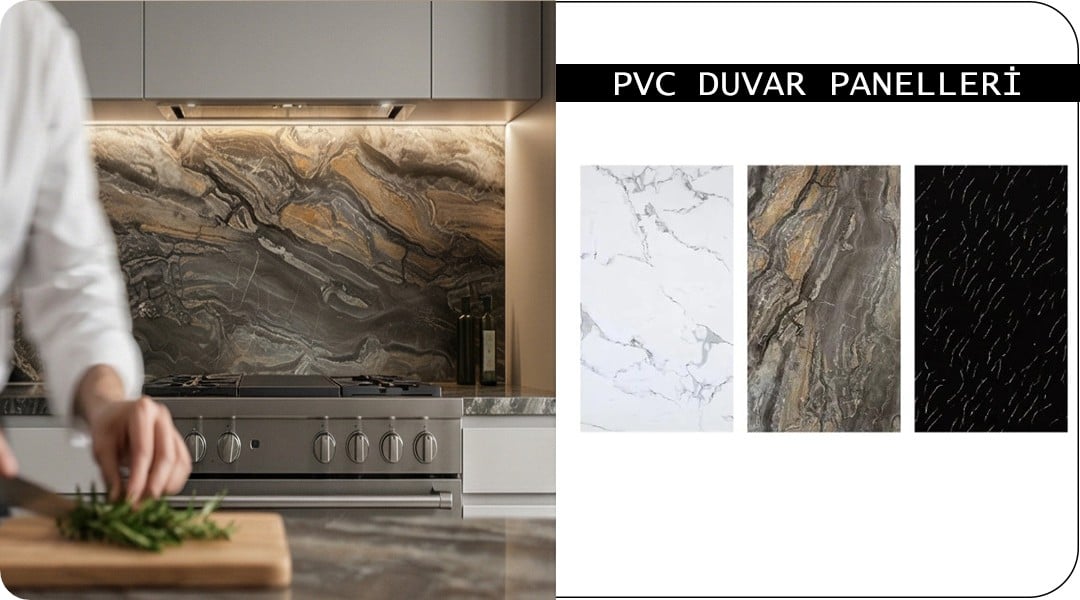 PVC Duvar Paneli: Neme dayanıklıdır; banyo, mutfak ve balkonlarda güvenle kullanılır.
