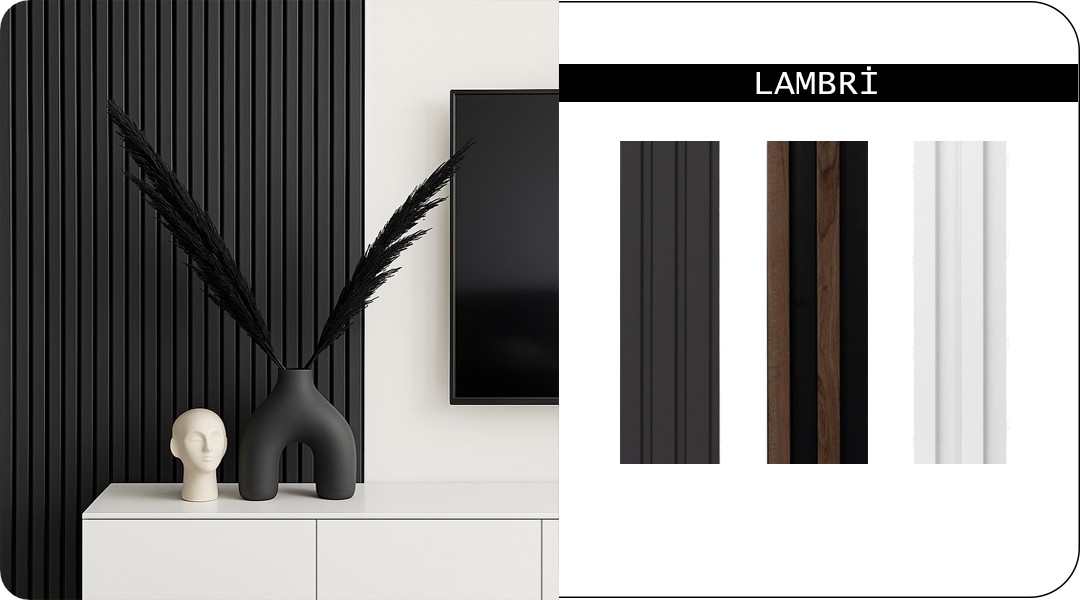 Lambri ürünleri, duvarlara sıcaklık ve mimari bir ritim kazandırır.