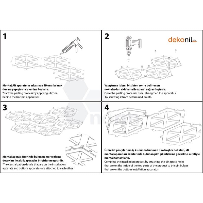يتم تثبيت الألواح الجدارية سهلة التطبيق على السطح باستخدام مواد لاصقة مثل السيليكون.